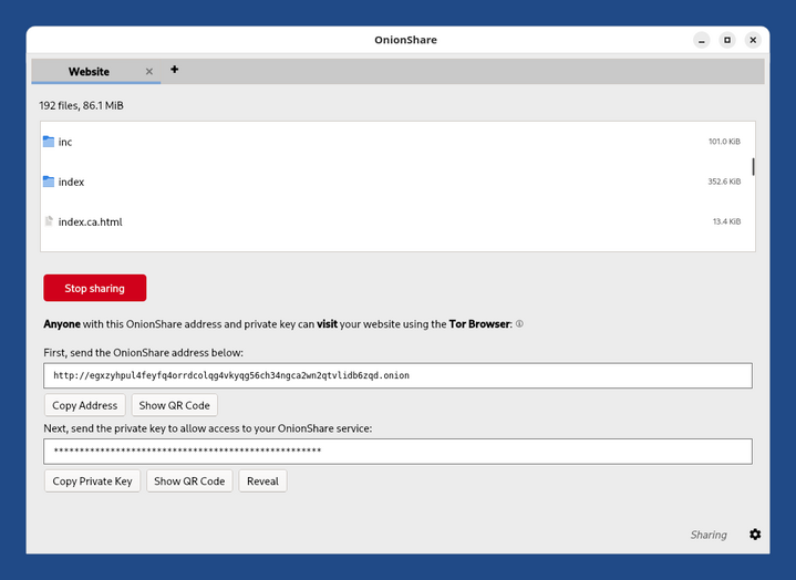 OnionShare allows you to create secure, anonymous, and disposable services that other people can connect to.